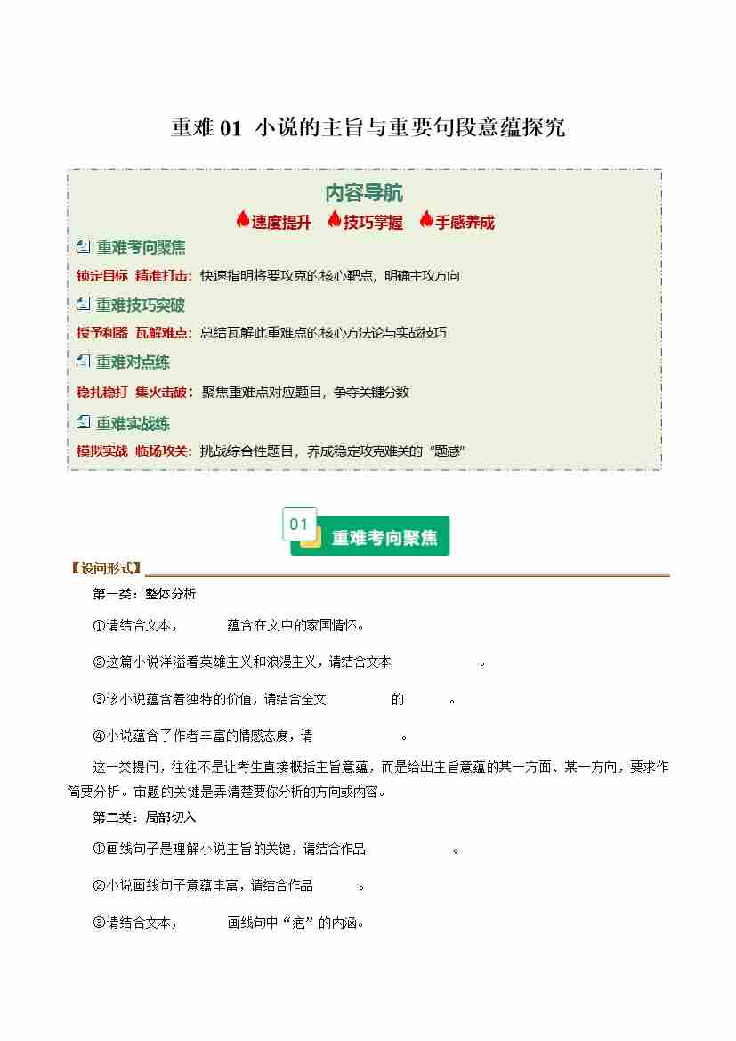 重难01 小说的主旨与重要句段意蕴探究(重难专练)(全国通用)(教师版)