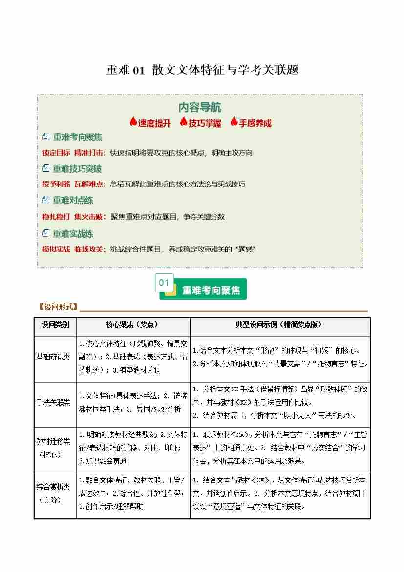 重难01 散文文体特征与学考关联题(重难专练)(全国通用)(学生版)