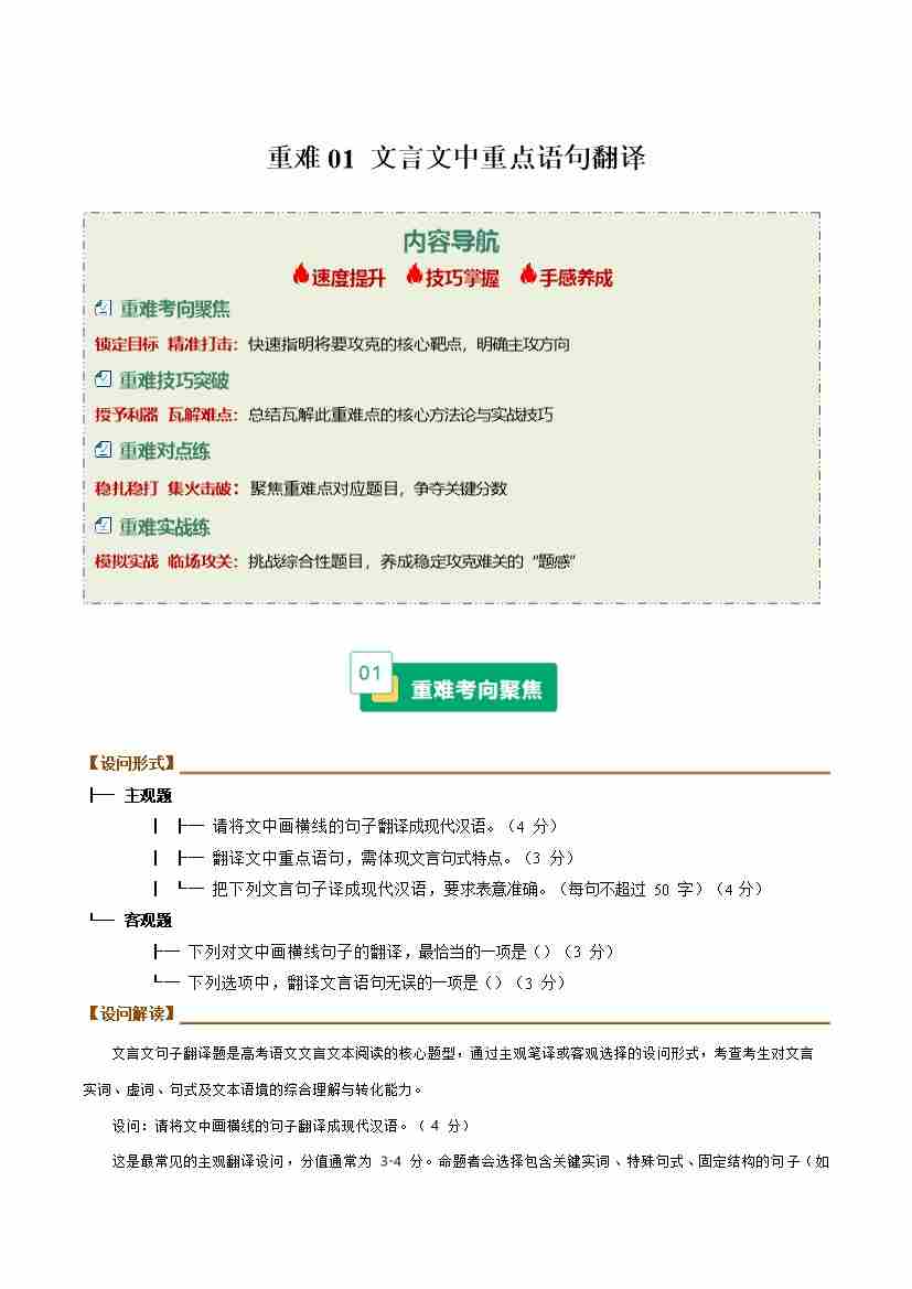 重难01 文言文中重点语句翻译题(重难专练)(全国通用)(学生版)