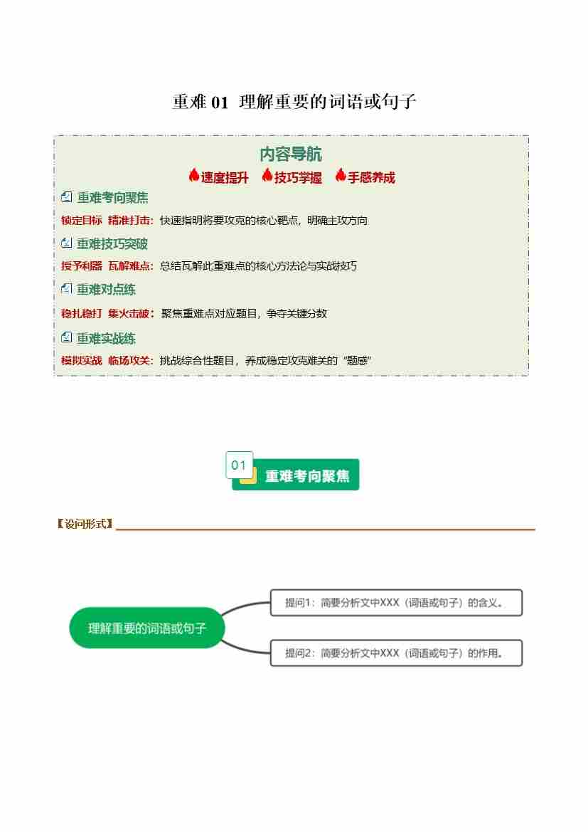 重难01 理解重要的词语或句子(重难专练)(全国通用)(学生版)