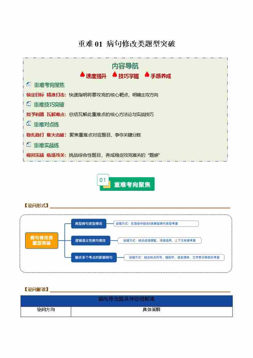 重难01 病句修改类题型突破(重难专练)(全国通用)(学生版)