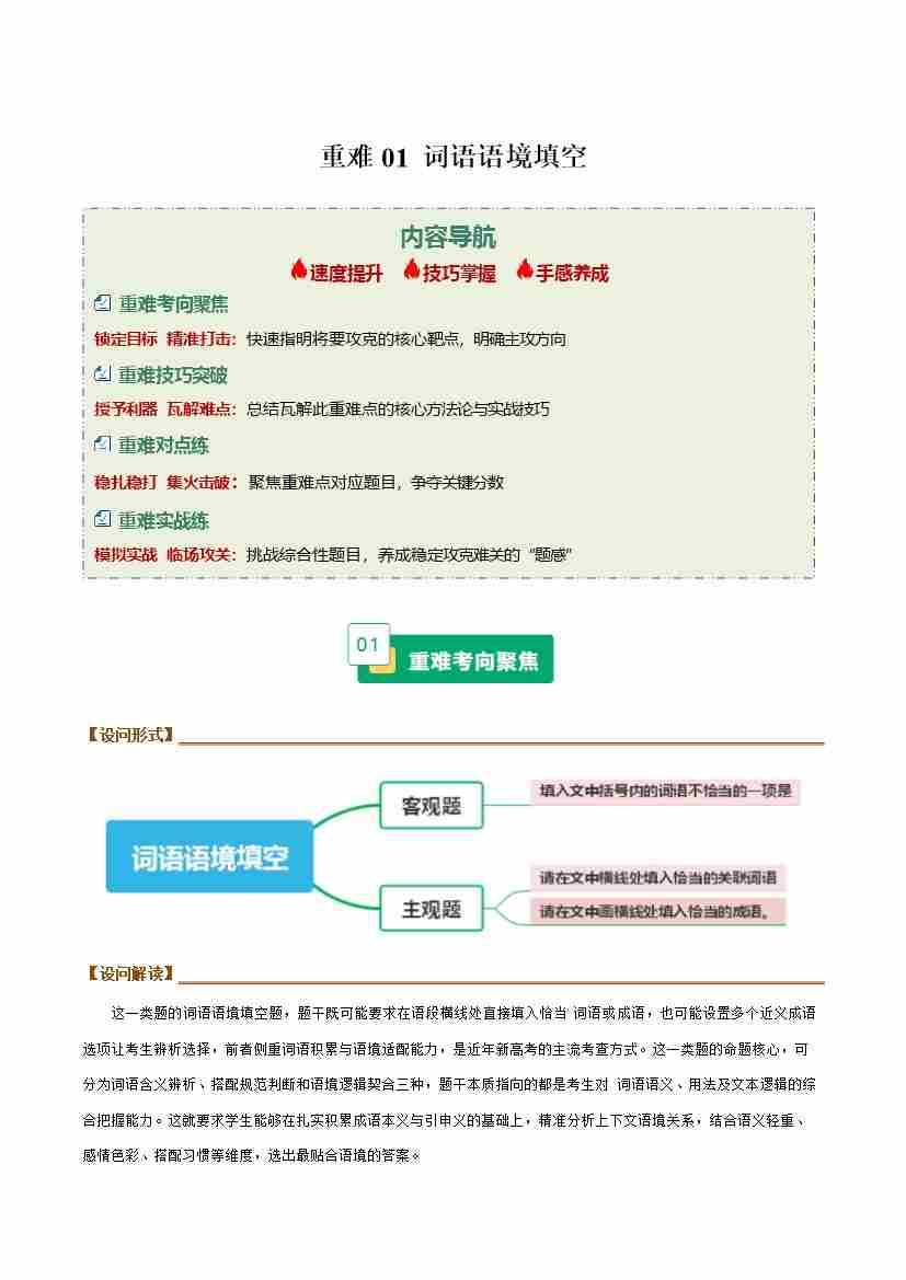 重难01 词语语境填空(重难专练)(全国通用)(学生版)