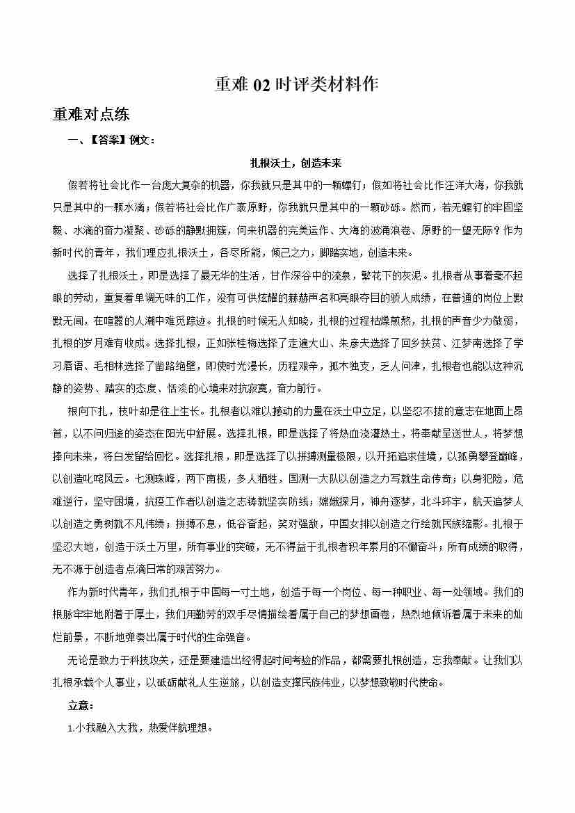 重难02时评类材料作文(重难专练)(全国通用)(答案版)