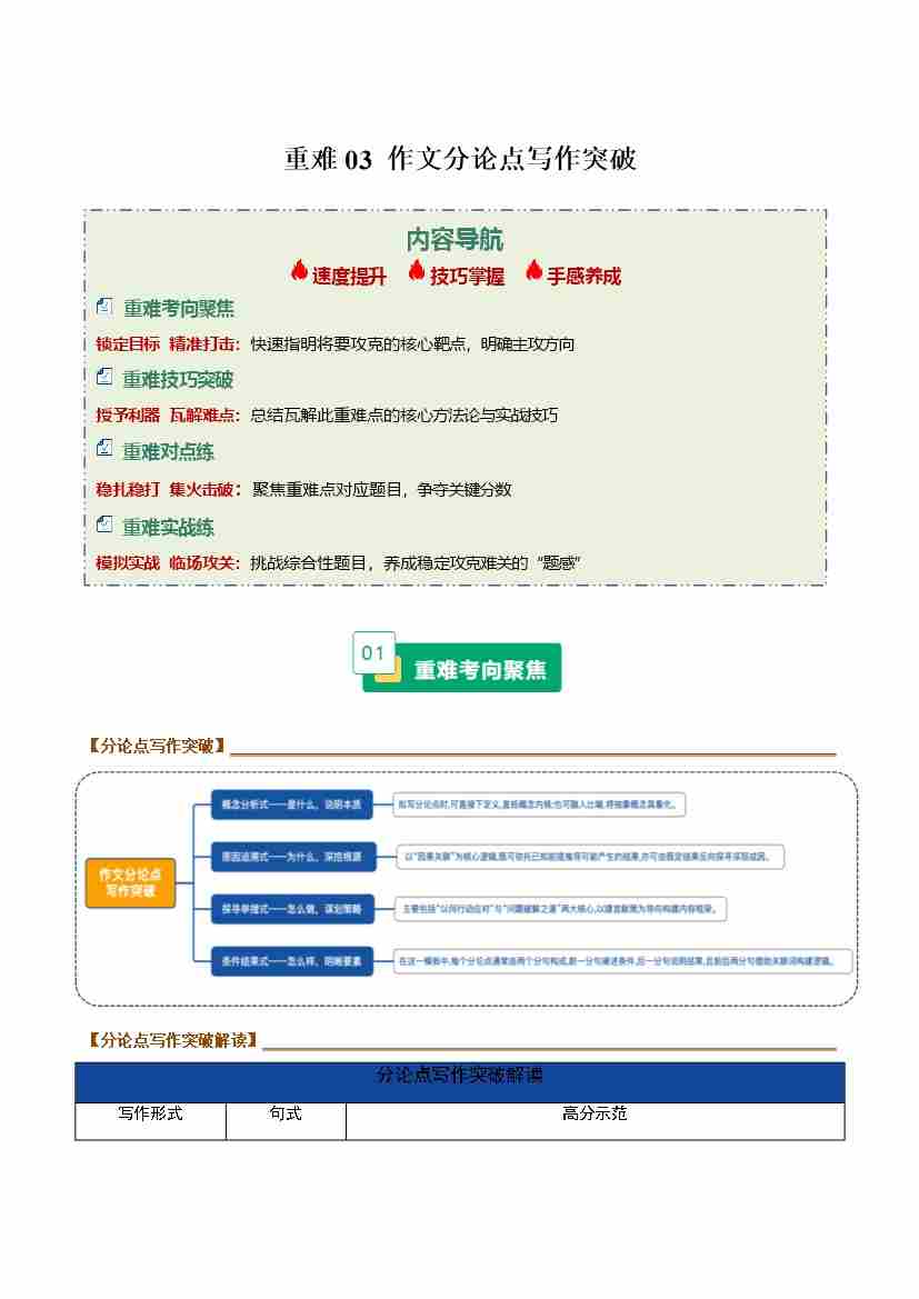 重难03 作文分论点写作突破(重难专练)(全国通用)(学生版)