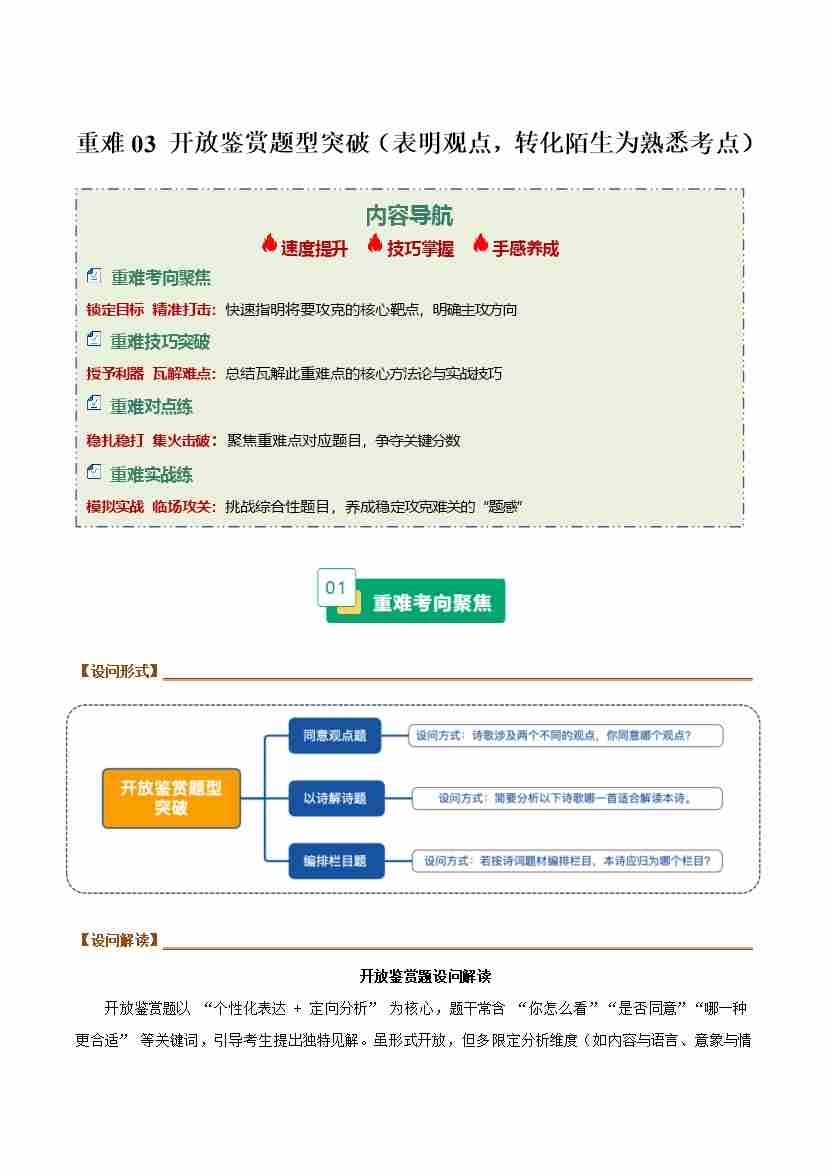 重难03 开放鉴赏题型突破(表明观点,转化陌生为熟悉考点)(重难专练)(全国通用)(学生版)