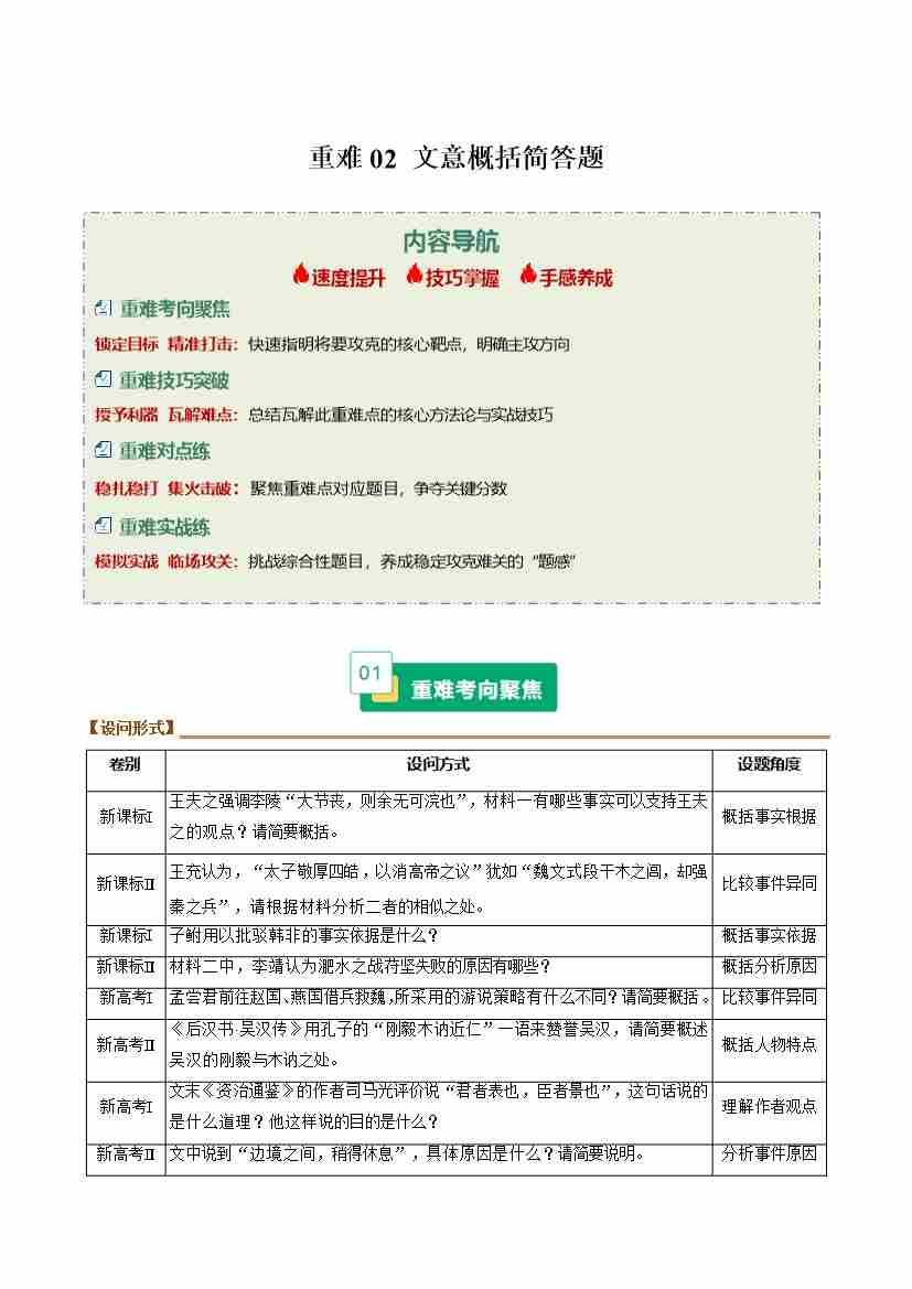 重难02 文言文文意概括简答题(重难专练)(全国通用)(学生版)
