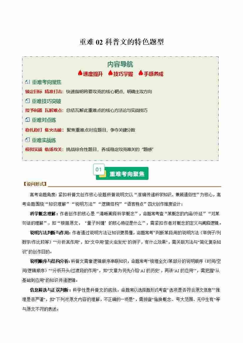 重难02 科普文的特色题型(重难专练)(全国通用)(学生版)