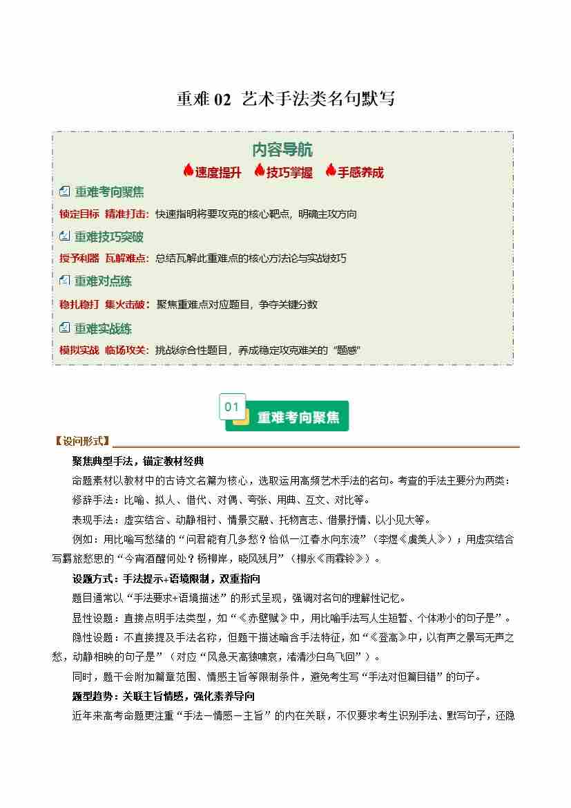 重难02 艺术手法类名句默写(重难专练)(全国通用)(学生版)