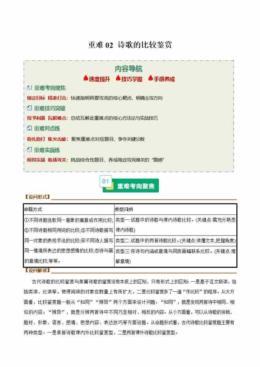 重难02 诗歌的比较鉴赏(重难专练)(全国通用)(学生版)
