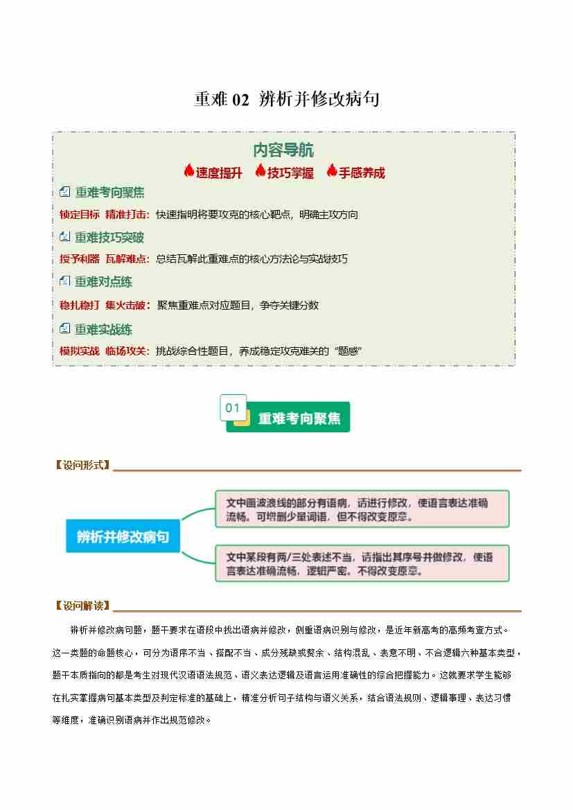 重难02 辨析并修改病句(重难专练)(全国通用)(学生版)