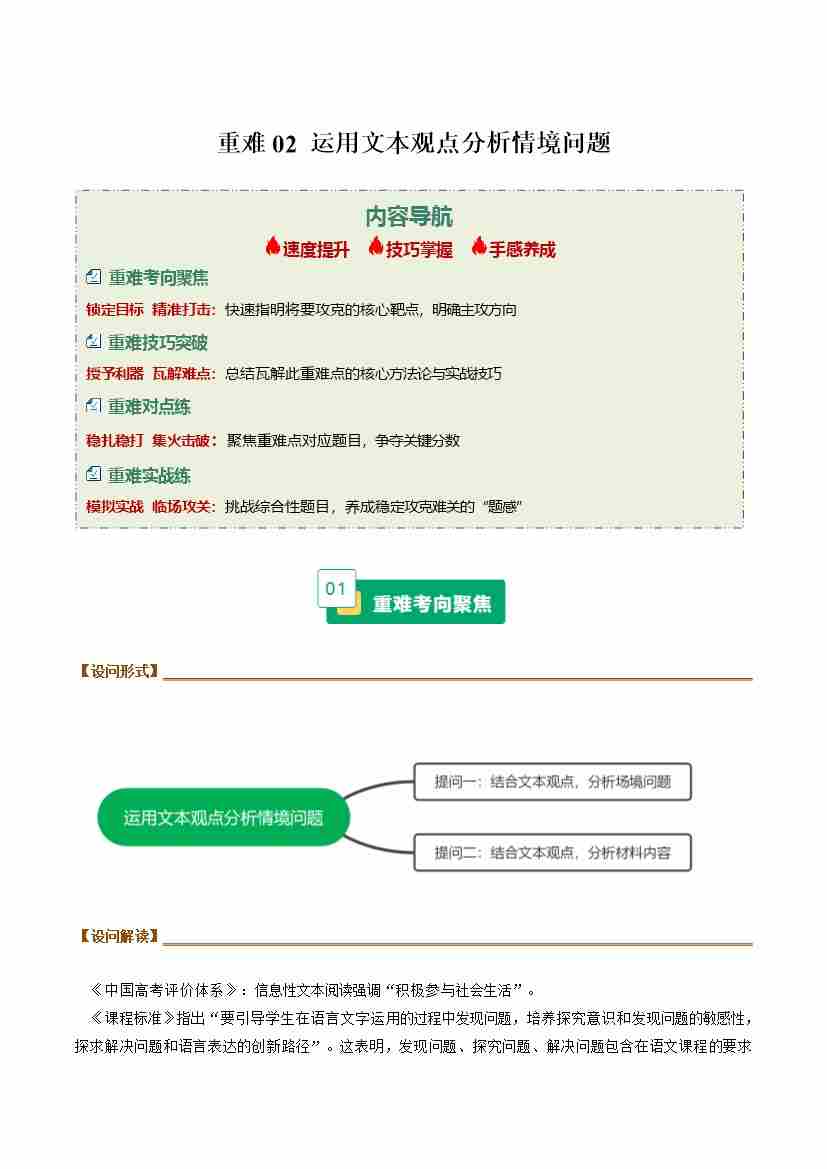 重难02 运用文本观点分析情境问题(重难专练)(全国通用)(学生版)