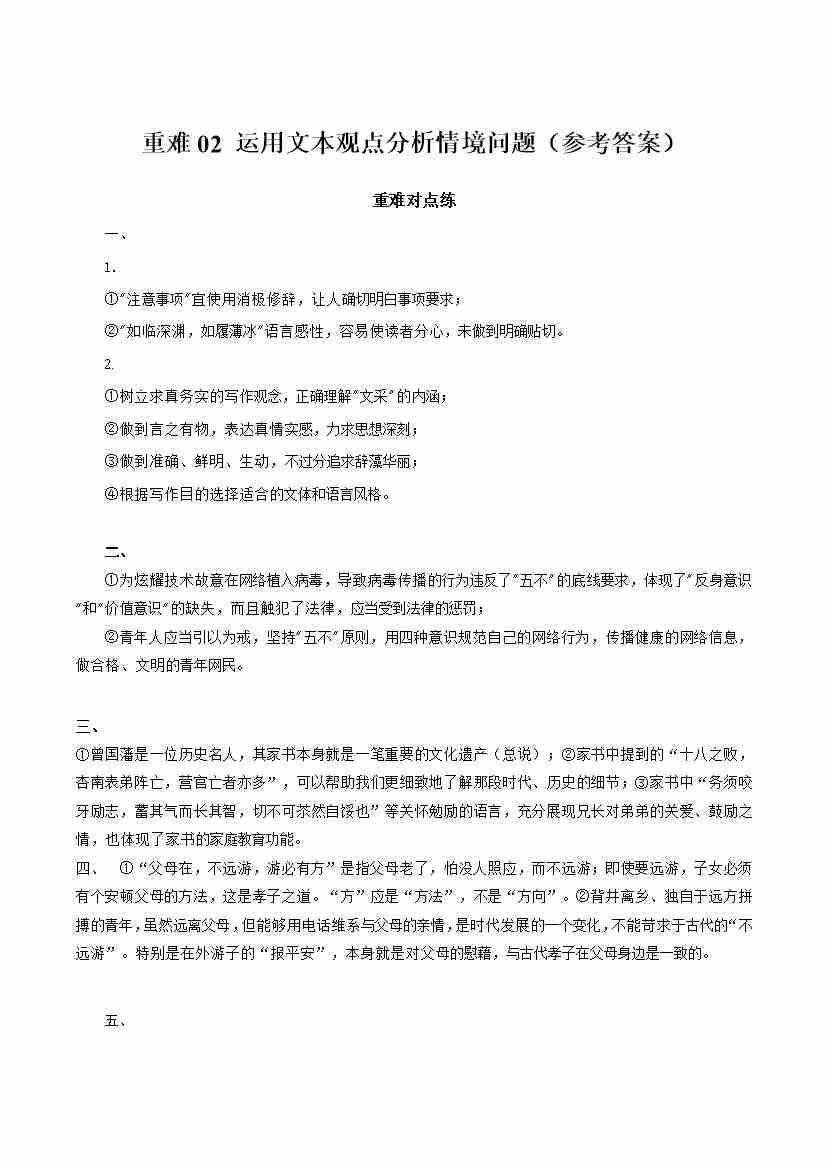 重难02 运用文本观点分析情境问题(重难专练)(全国通用)(答案版)