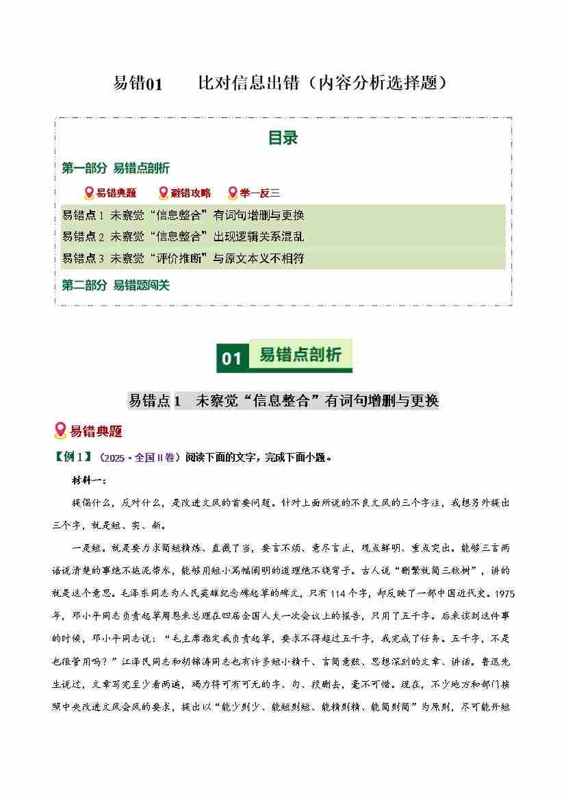 易错01 比对信息出错(易错专练)(全国通用)(学生版)