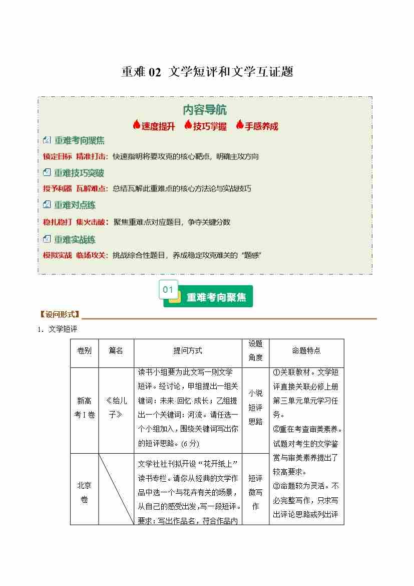 重难02 散文文学短评和文学互证题(重难专练)(全国通用)(学生版)