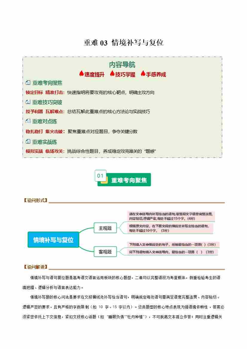 重难03 情境补写与复位(重难专练)(全国通用)(学生版)