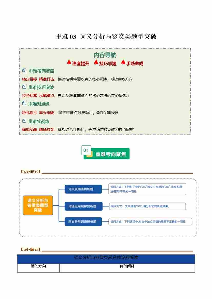 重难03 词义分析与鉴赏类题型突破(重难专练)(全国通用)(学生版)