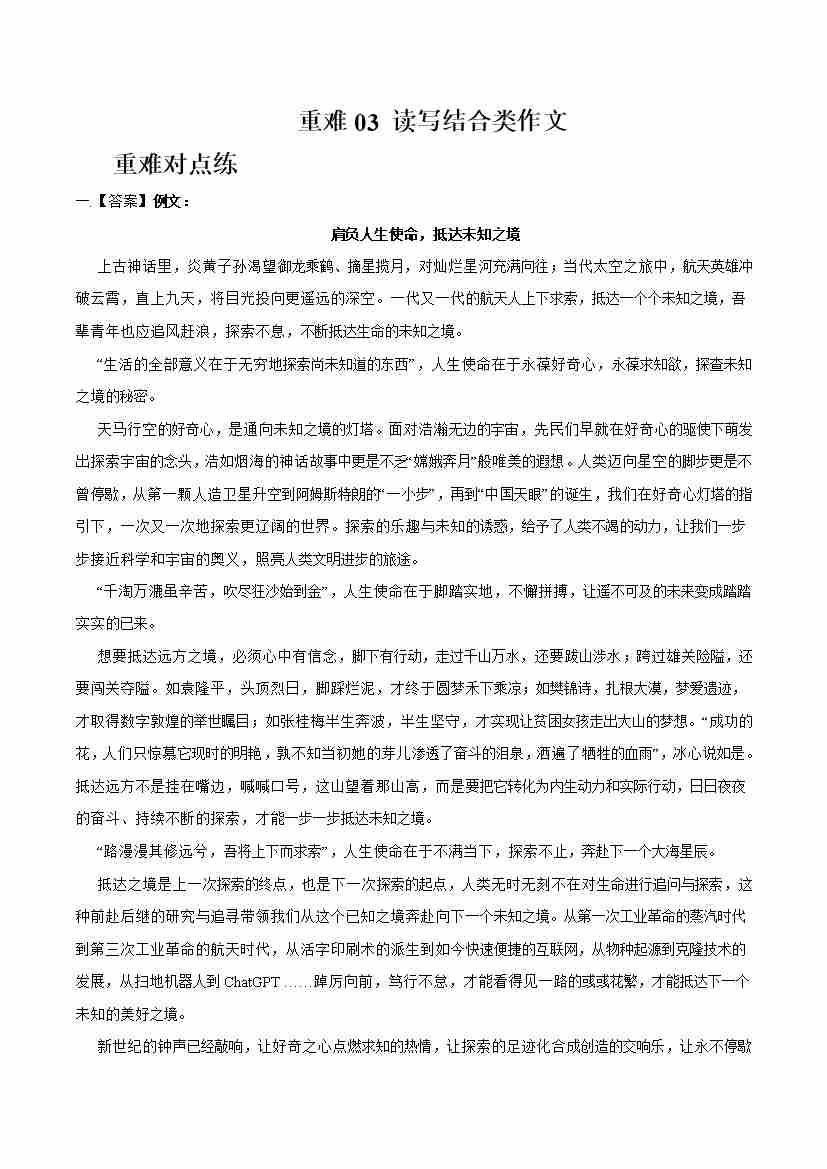 重难03读写结合类作文(重难专练)(全国通用)(答案版)