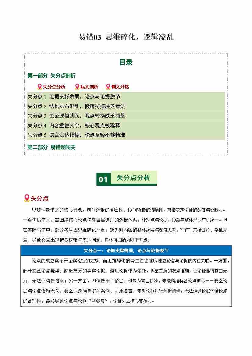 易错03 思维碎化,逻辑凌乱(易错专练)(全国通用)(学生版)