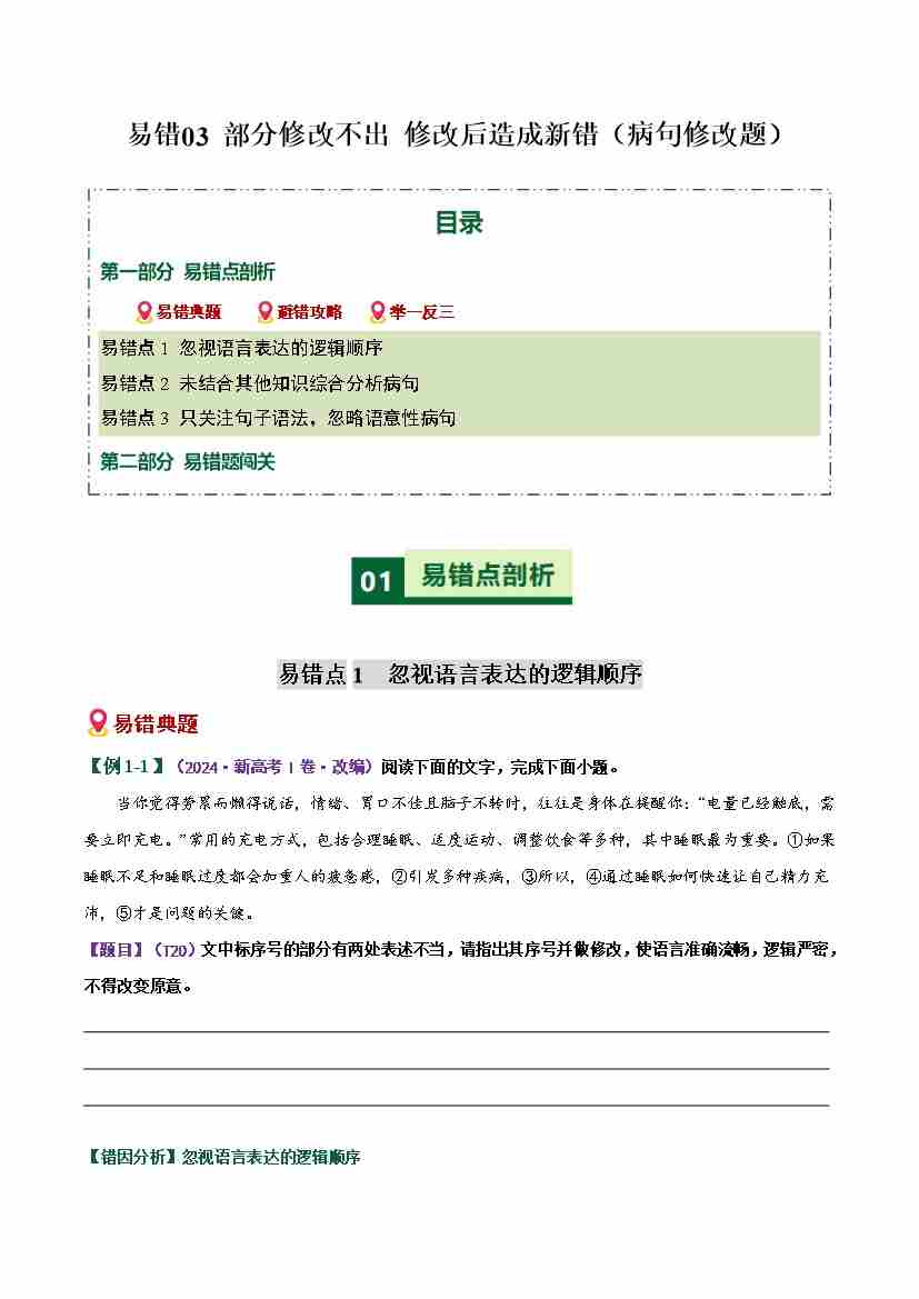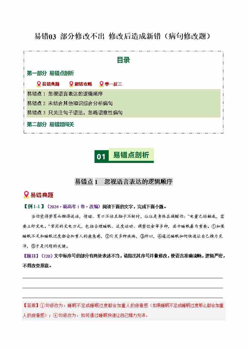 易错03 (病句修改题)部分修改不出 修改后造成新错(易错专练)(全国通用)(学生版)