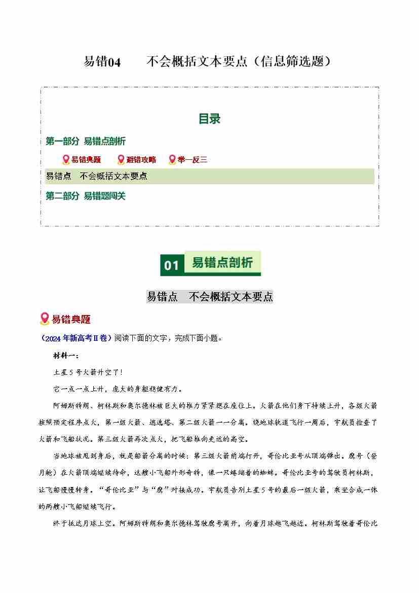 易错04 不会概括文本要点(信息筛选题)(易错专练)(全国通用)(学生版)