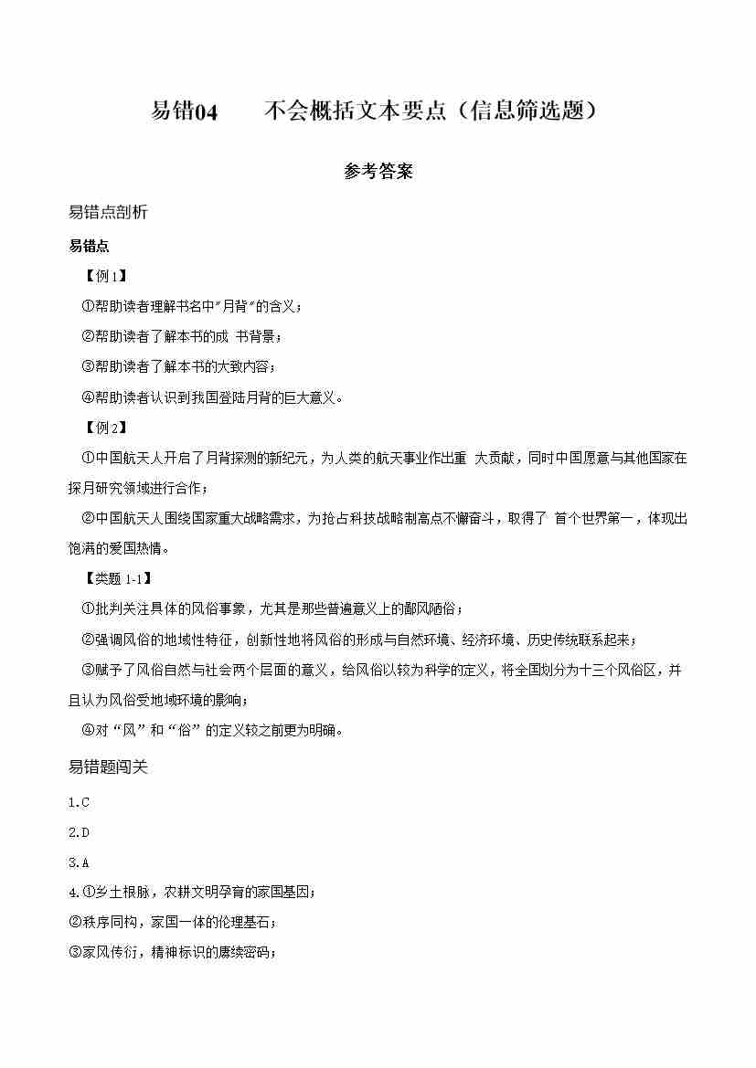 易错04 不会概括文本要点(信息筛选题)(易错专练)(全国通用)(答案版)