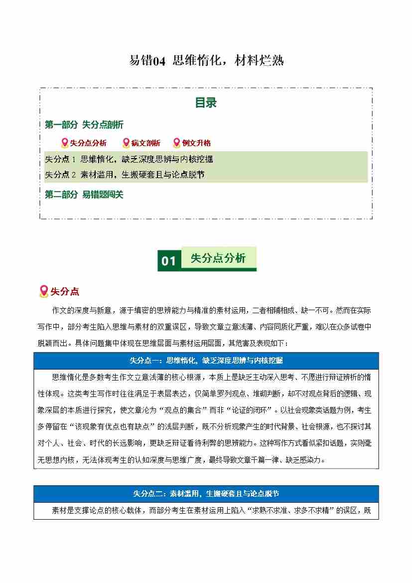 易错04 思维惰化,材料烂熟(易错专练)(全国通用)(学生版)