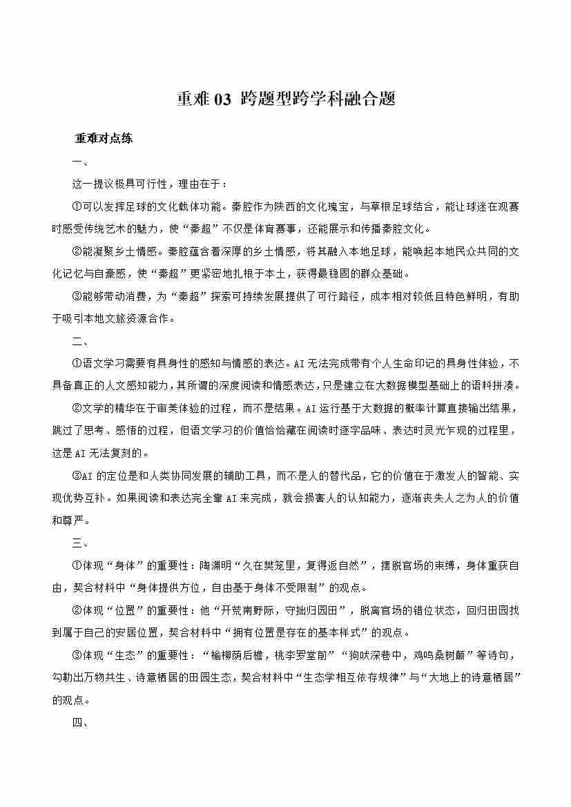 重难03 跨题型跨学科融合题(重难专练)(全国通用)(答案版)