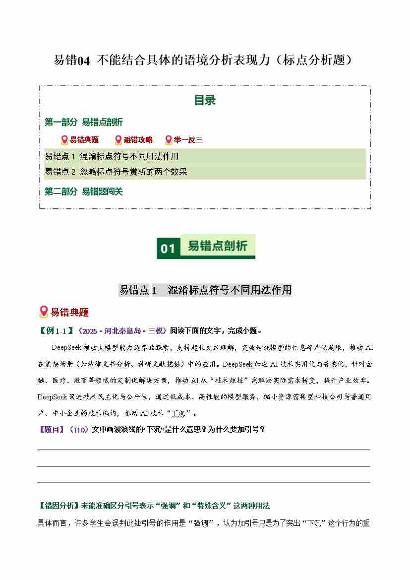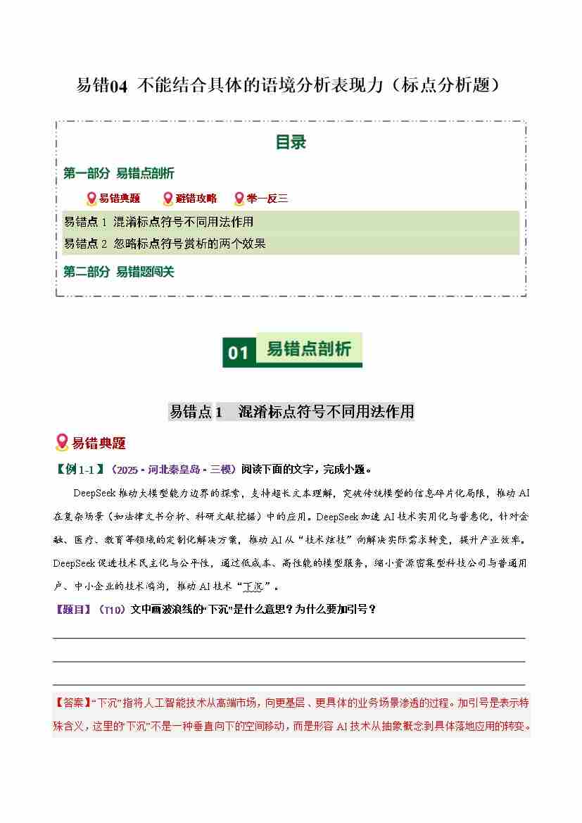 易错04 (标点分析题)不能结合具体的语境分析表现力(易错专练)(全国通用)(学生版)
