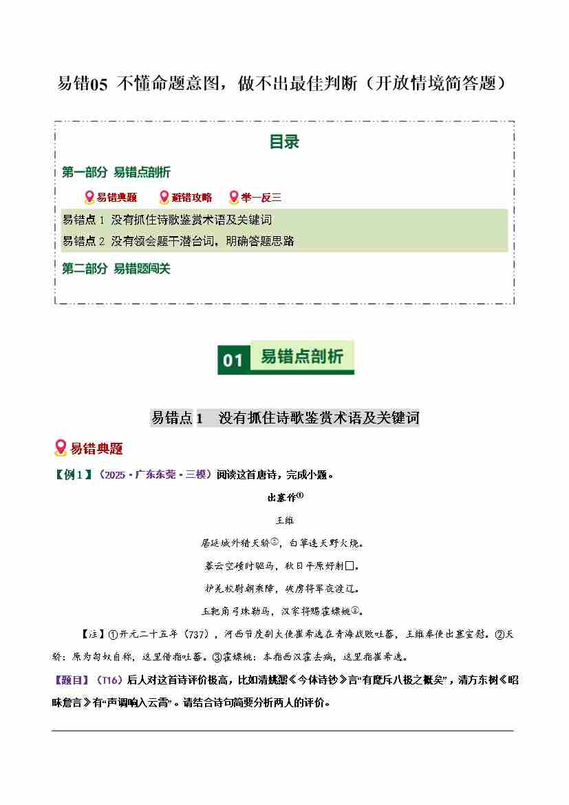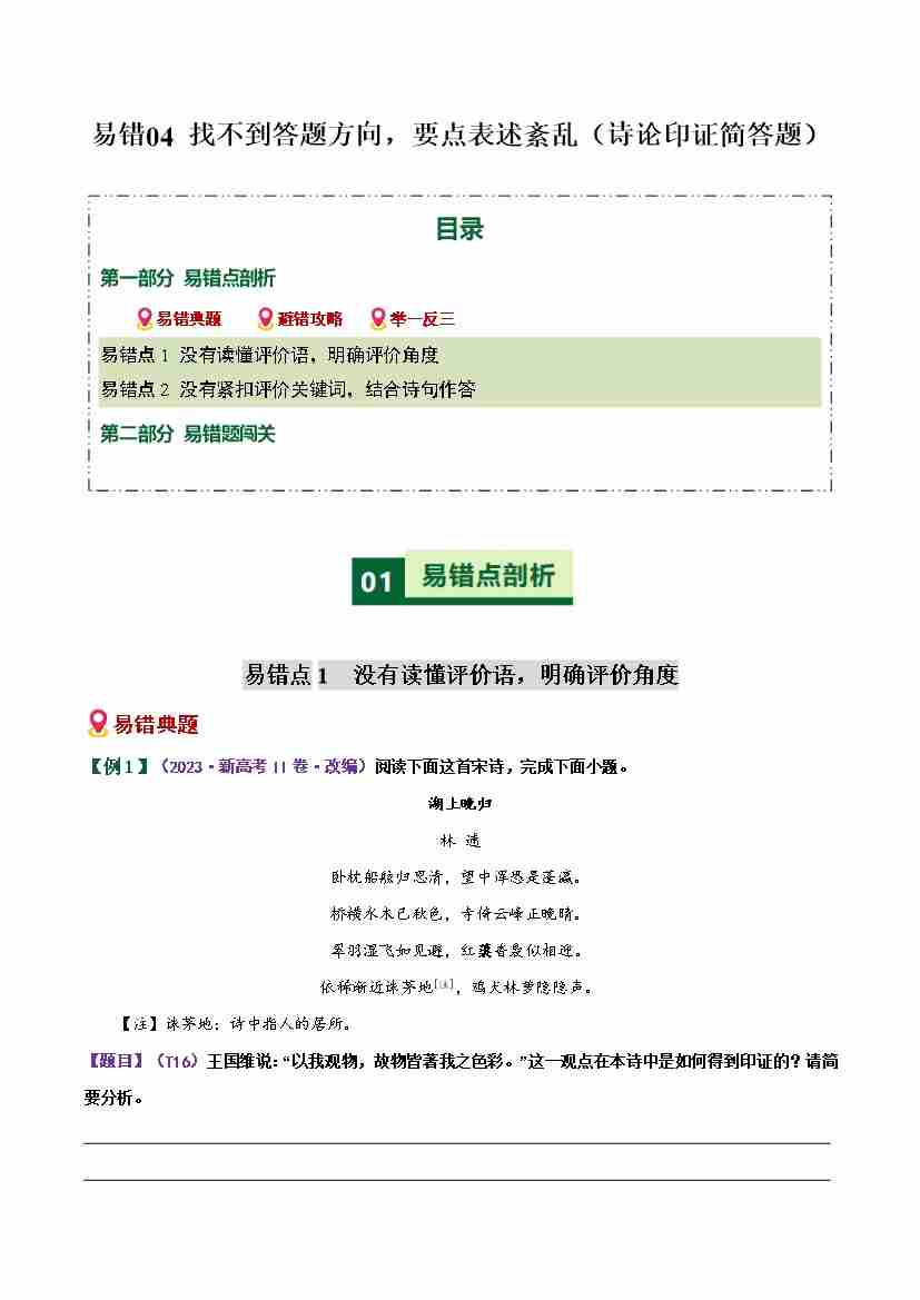 易错04 (诗论印证简答题)找不到答题方向,要点表述紊乱(易错专练)(全国通用)(学生版)