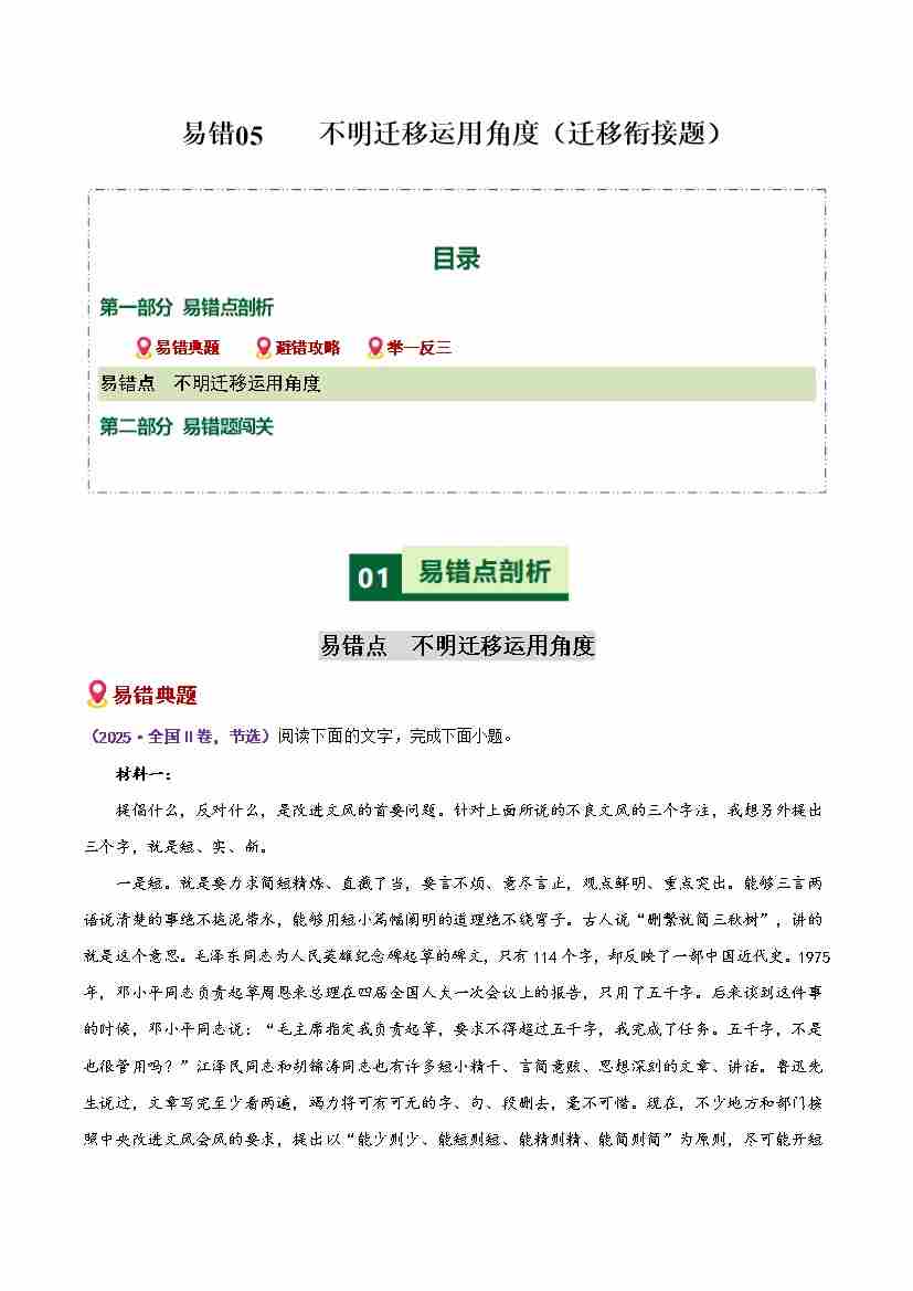 易错05 不明迁移运用角度(迁移衔接题)(易错专练)(全国通用)(学生版)
