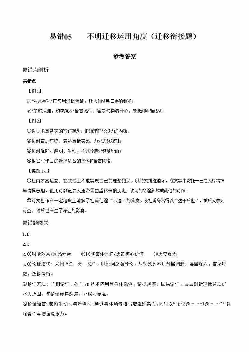 易错05 不明迁移运用角度(迁移衔接题)(易错专练)(全国通用)(答案版)