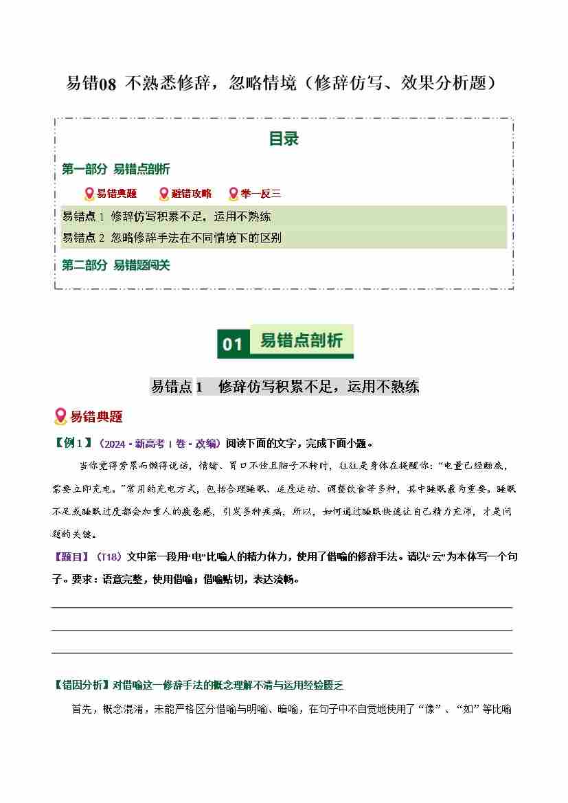 易错08 (效果分析题)不熟悉修辞,忽略情境-修辞仿写(易错专练)(全国通用)(学生版)