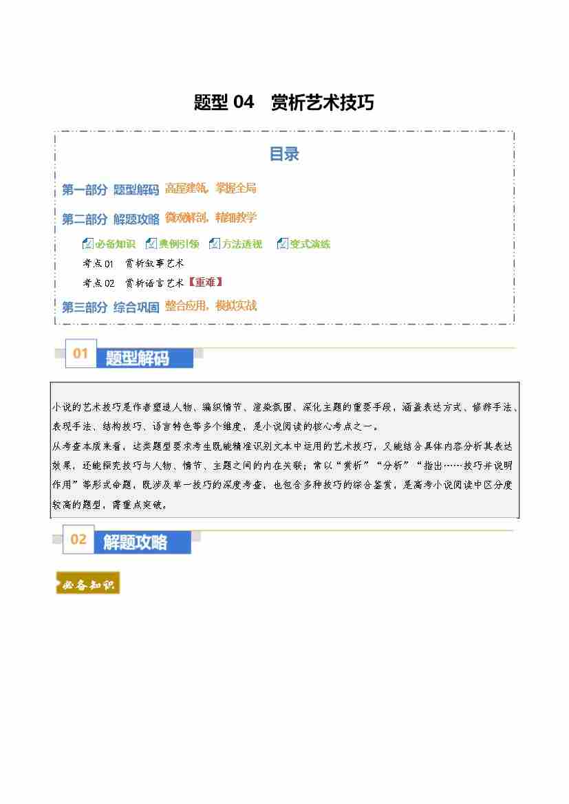 题型04 赏析艺术技巧(题型专练)(全国通用)(教师版)