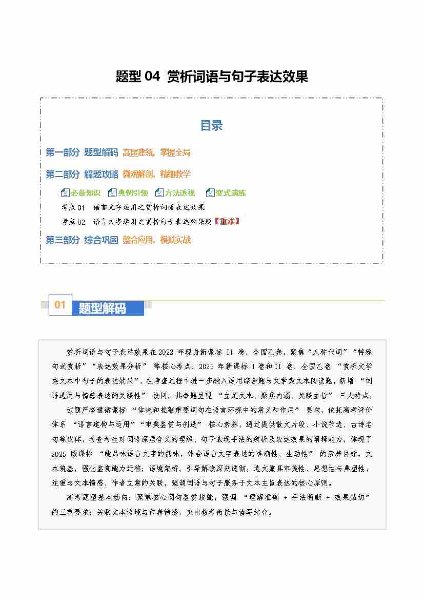 题型04 赏析词语与句子表达效果题(题型专练)(全国通用)(学生版)