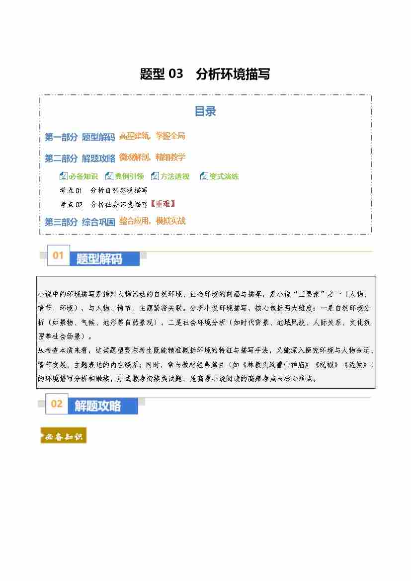题型03 分析环境描写(题型专练)(全国通用)(教师版)
