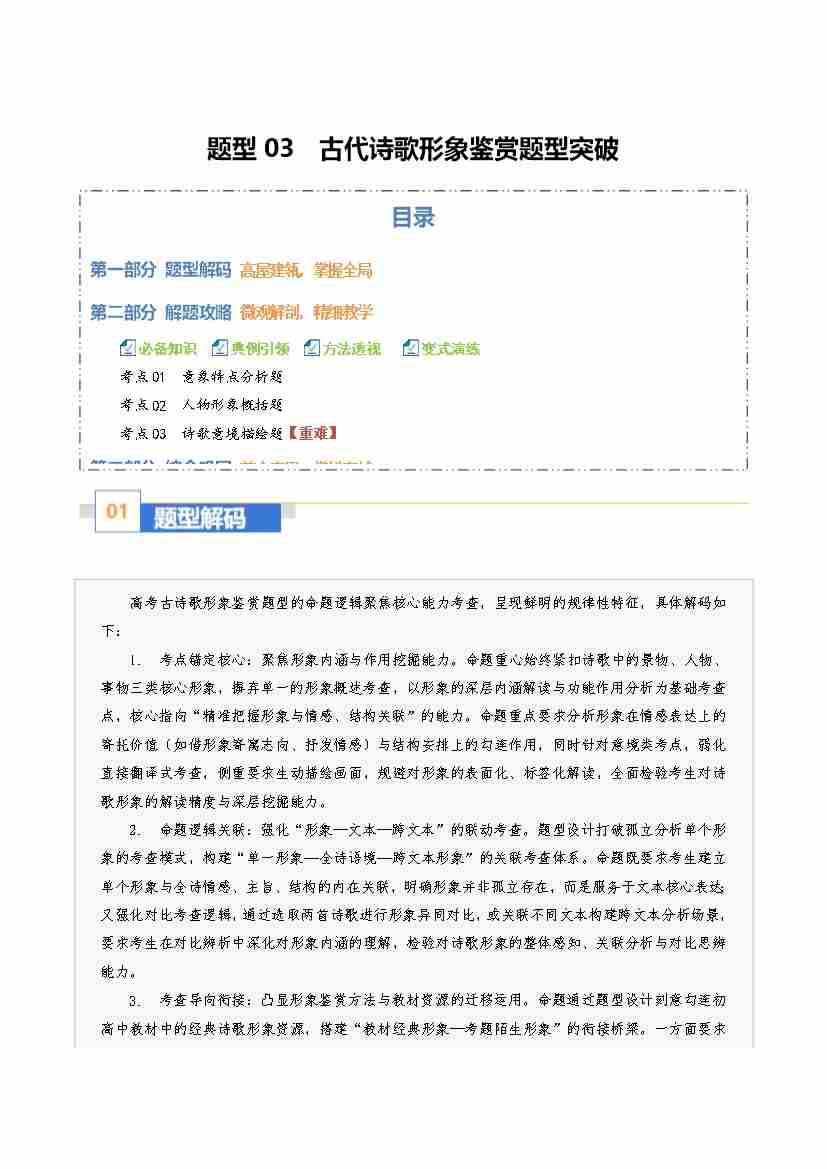 题型03 古代诗歌形象鉴赏题型突破(题型专练)(全国通用)(学生版)