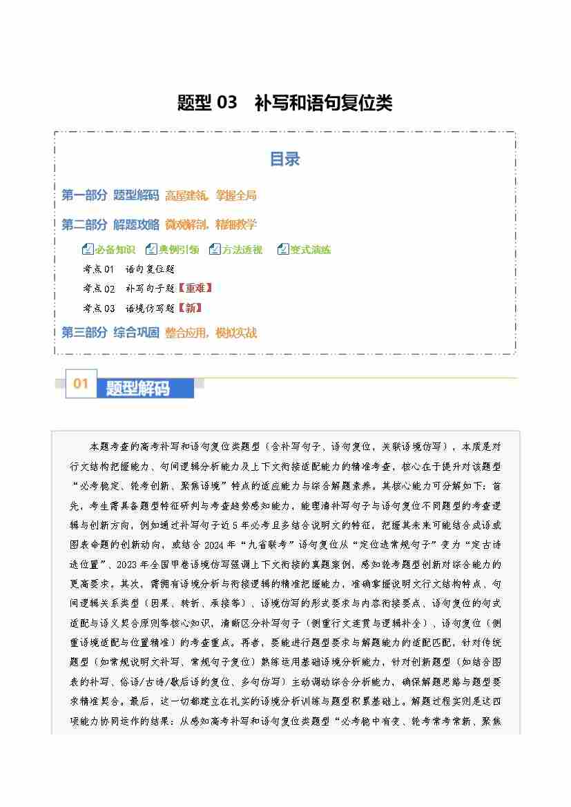 题型03 补写和语句复位类(题型专练)(全国通用)(学生版)