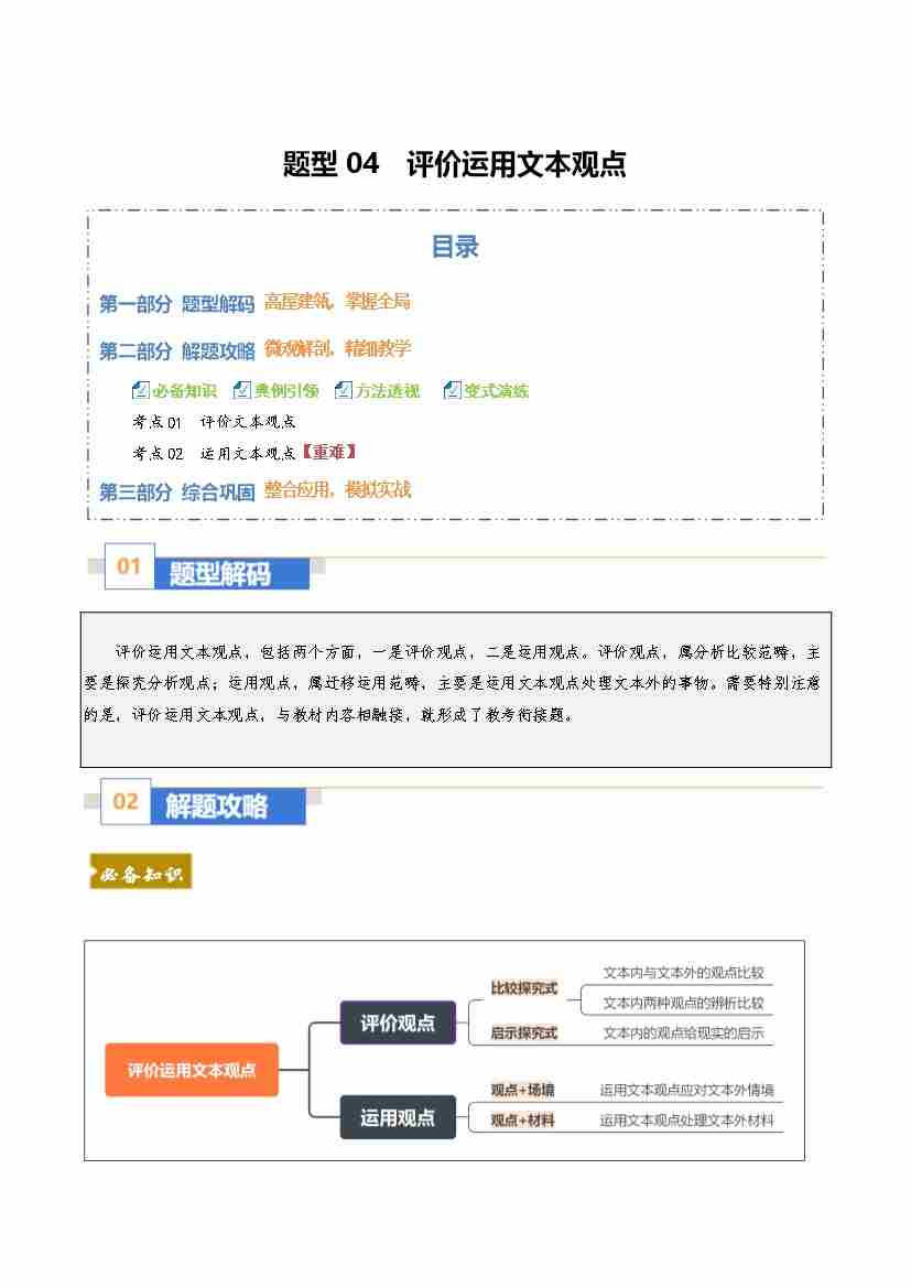 题型04 评价运用文本观点(题型专练)(全国通用)(教师版)
