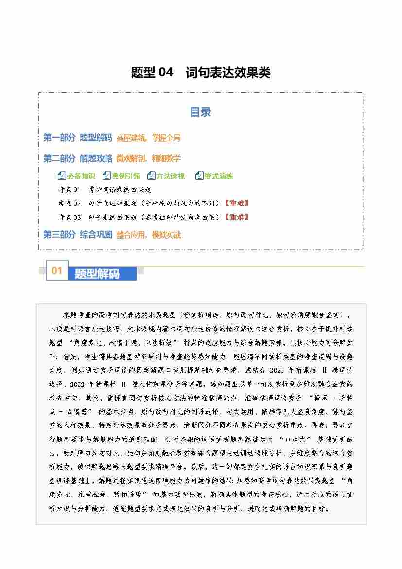 题型04 词句表达效果类(题型专练)(全国通用)(学生版)