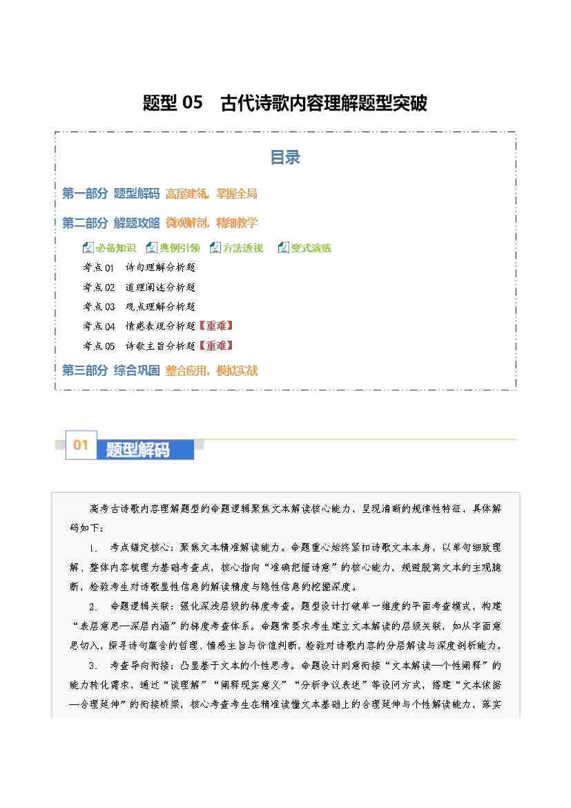 题型05 古代诗歌内容理解题型突破(题型专练)(全国通用)(教师版)