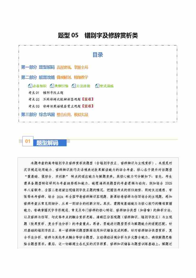 题型05 错别字及修辞赏析类(题型专练)(全国通用)(教师版)