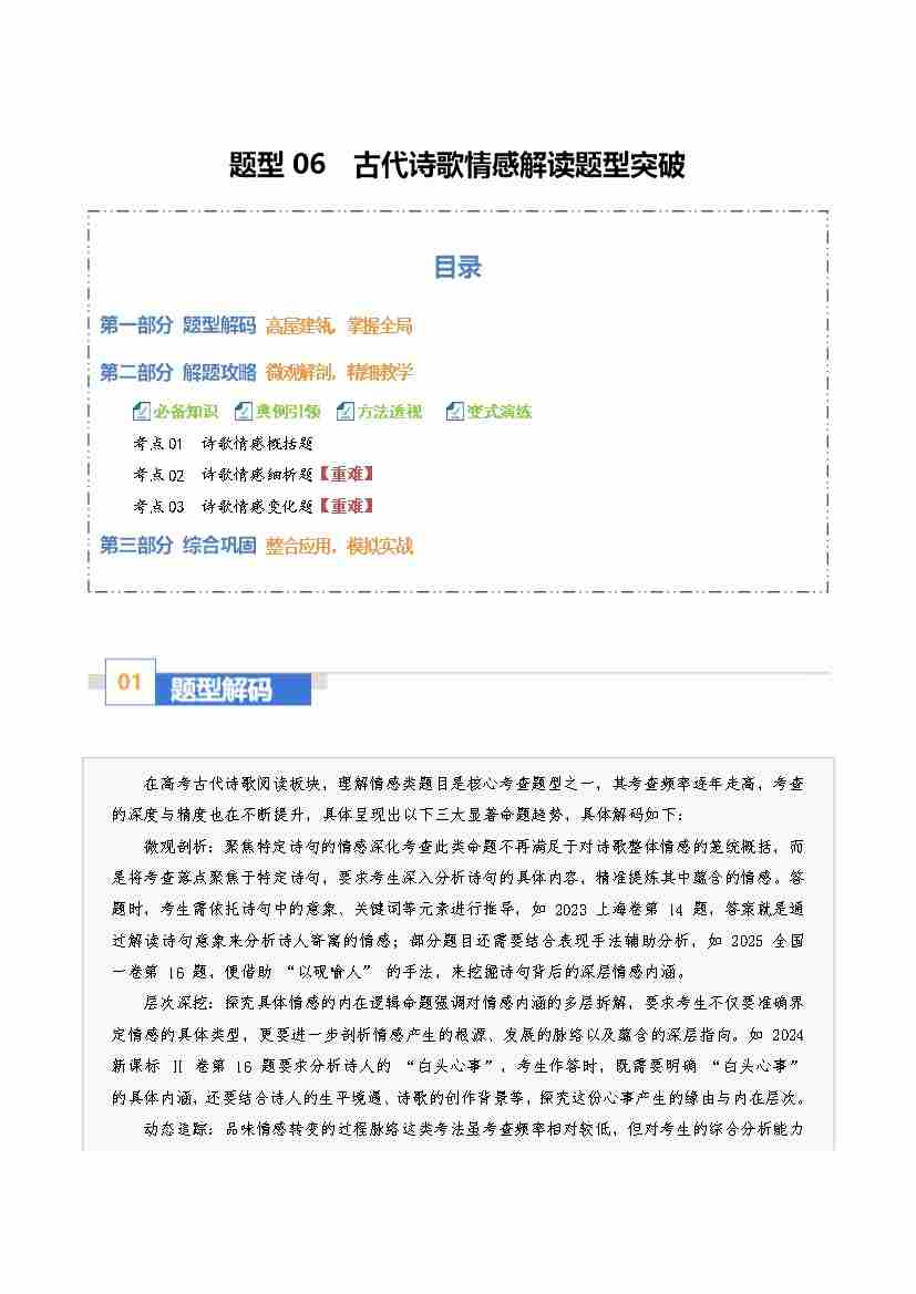 题型06 古代诗歌情感解读题型突破(题型专练)(全国通用)(学生版)