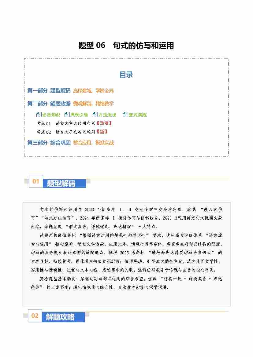 题型06 句式的仿写和运用(题型专练)(全国通用)(学生版)