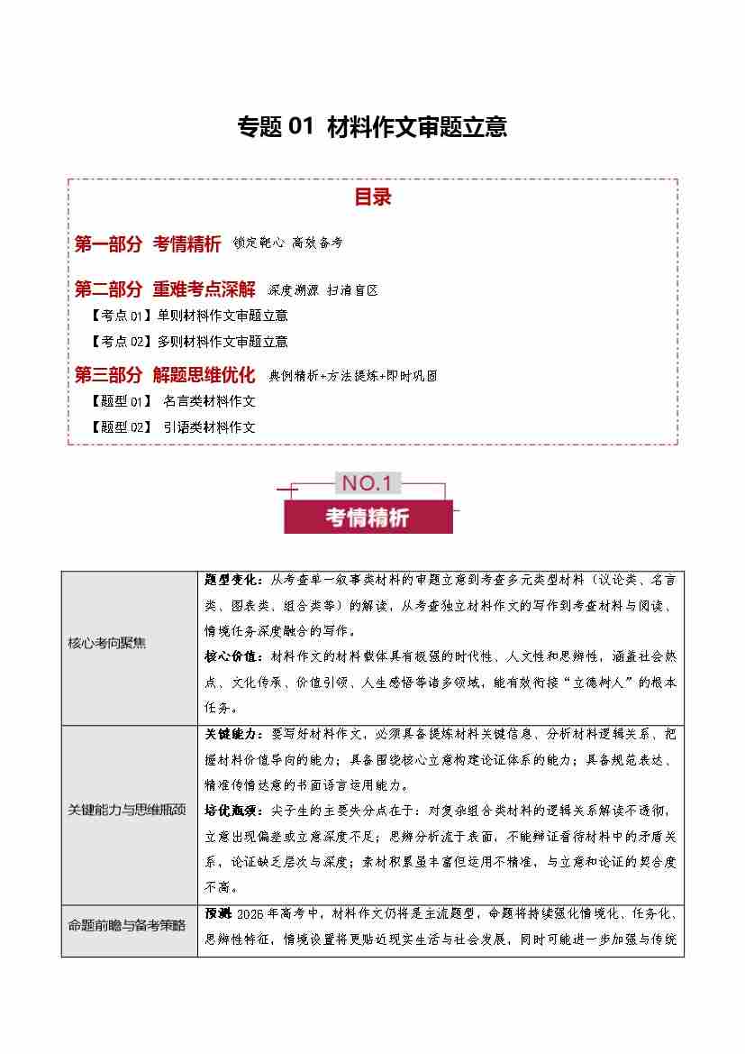 专题01 材料作文审题立意(培优讲义)(全国通用)(学生版)