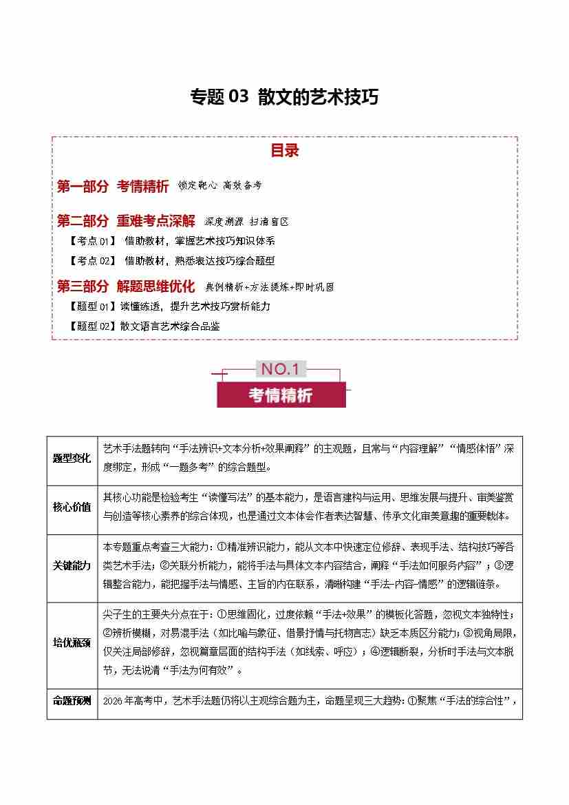 专题03 散文的艺术技巧(培优讲义)(全国通用)(学生版)