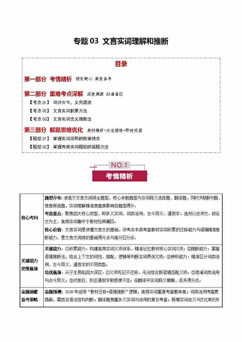 专题03 文言实词理解和推断(培优讲义)(全国通用)(学生版)