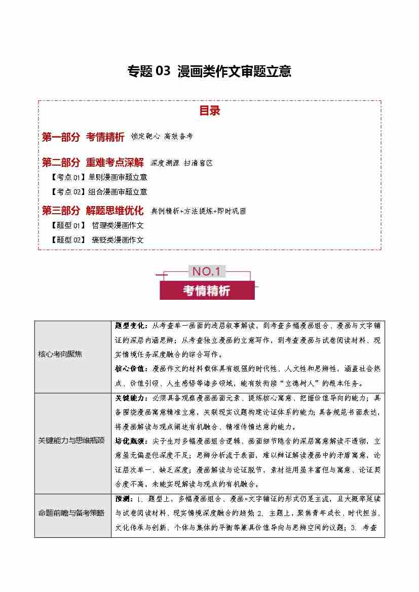 专题03 漫画类作文审题立意(培优讲义)(全国通用)(学生版)