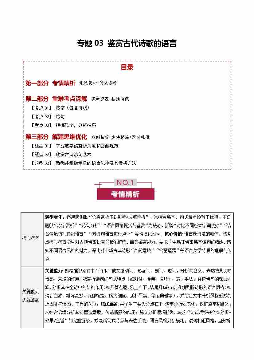 专题03 鉴赏古代诗歌的语言(培优讲义)(全国通用)(学生版)