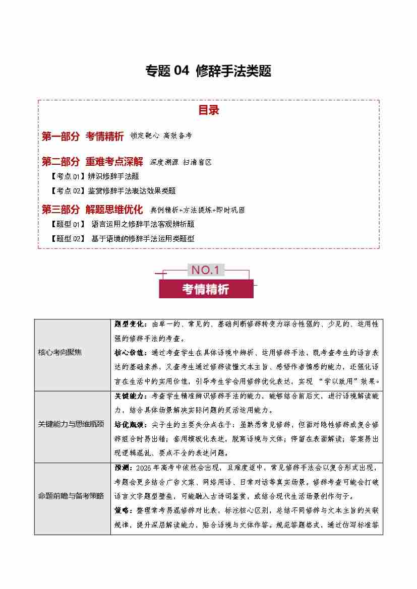 专题04 修辞手法题(培优讲义)(全国通用)(学生版)