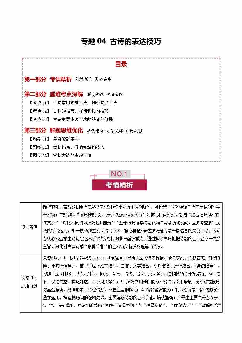 专题04 古诗的表达技巧(培优讲义)(全国通用)(学生版)